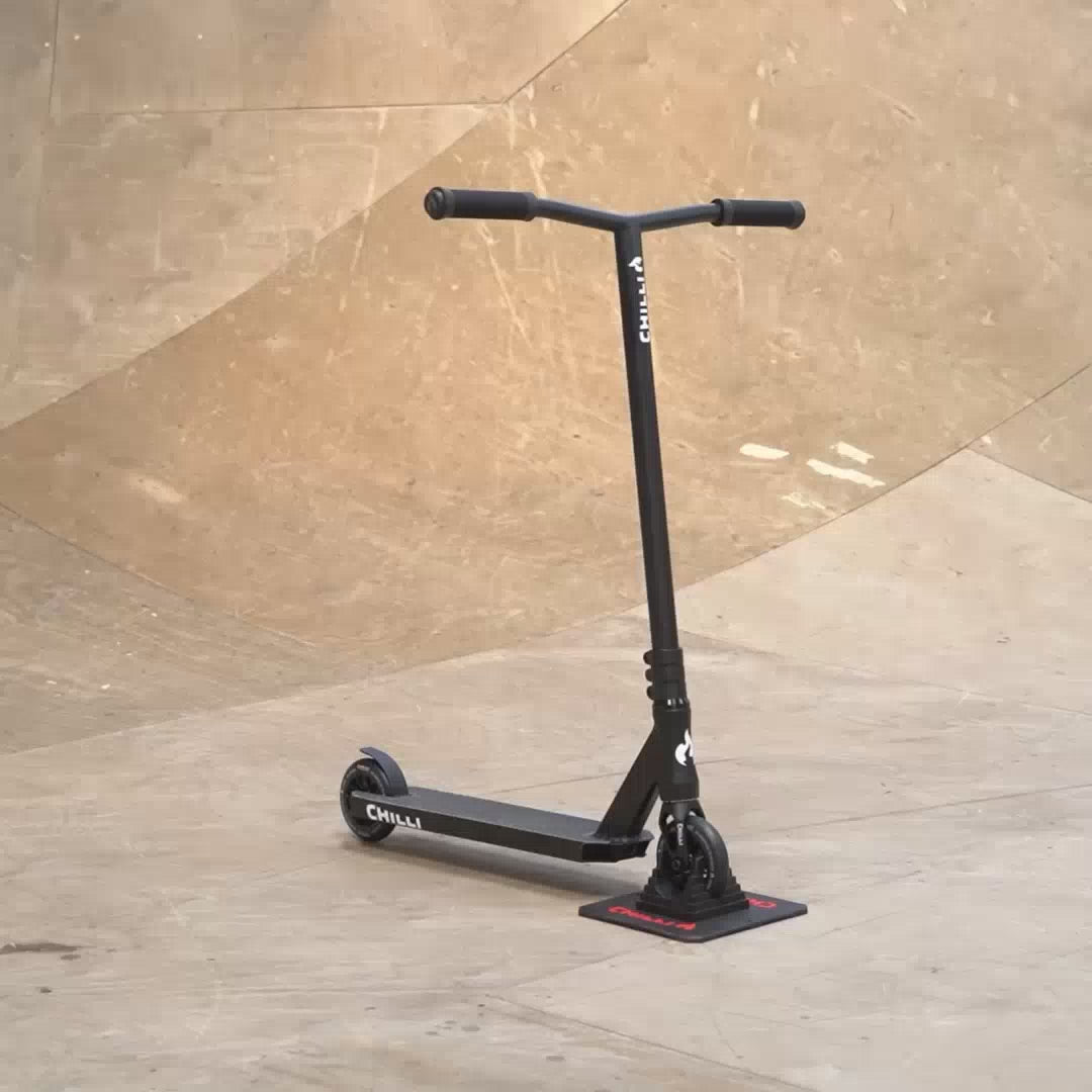 The Chilli REAPER is a super all-round entry-level stunt scooter with an unbeatable price/performance ratio. It is extremely robust and yet light enough for all imaginable tricks in the park. This makes it especially popular with our Chilli Rider Team. The REAPER has 110mm wheels as standard. In exchange for an extended brake, it can also be ridden with 120mm wheels.
