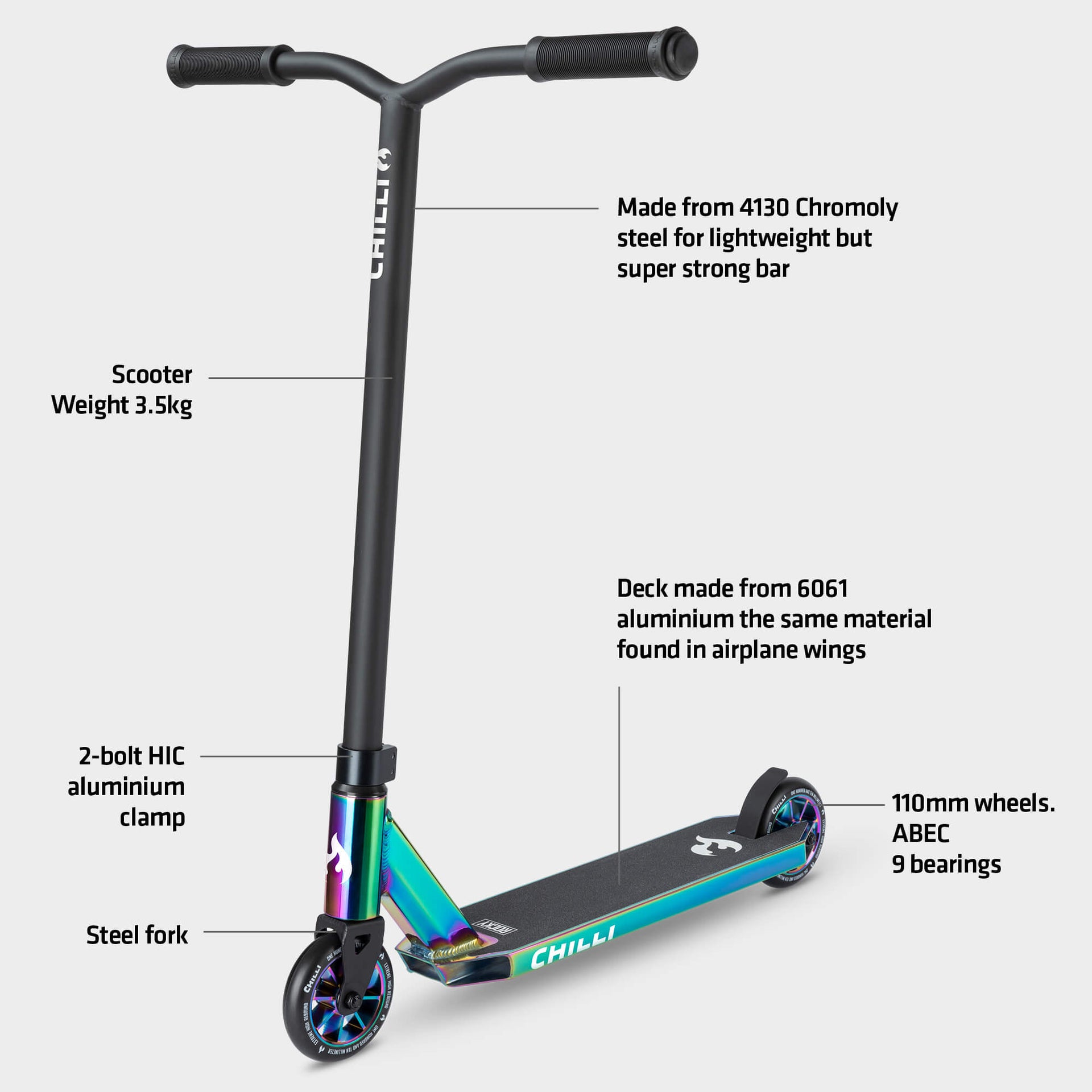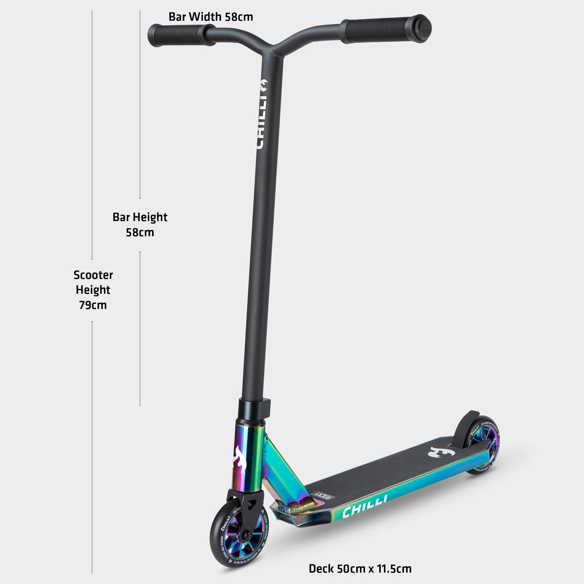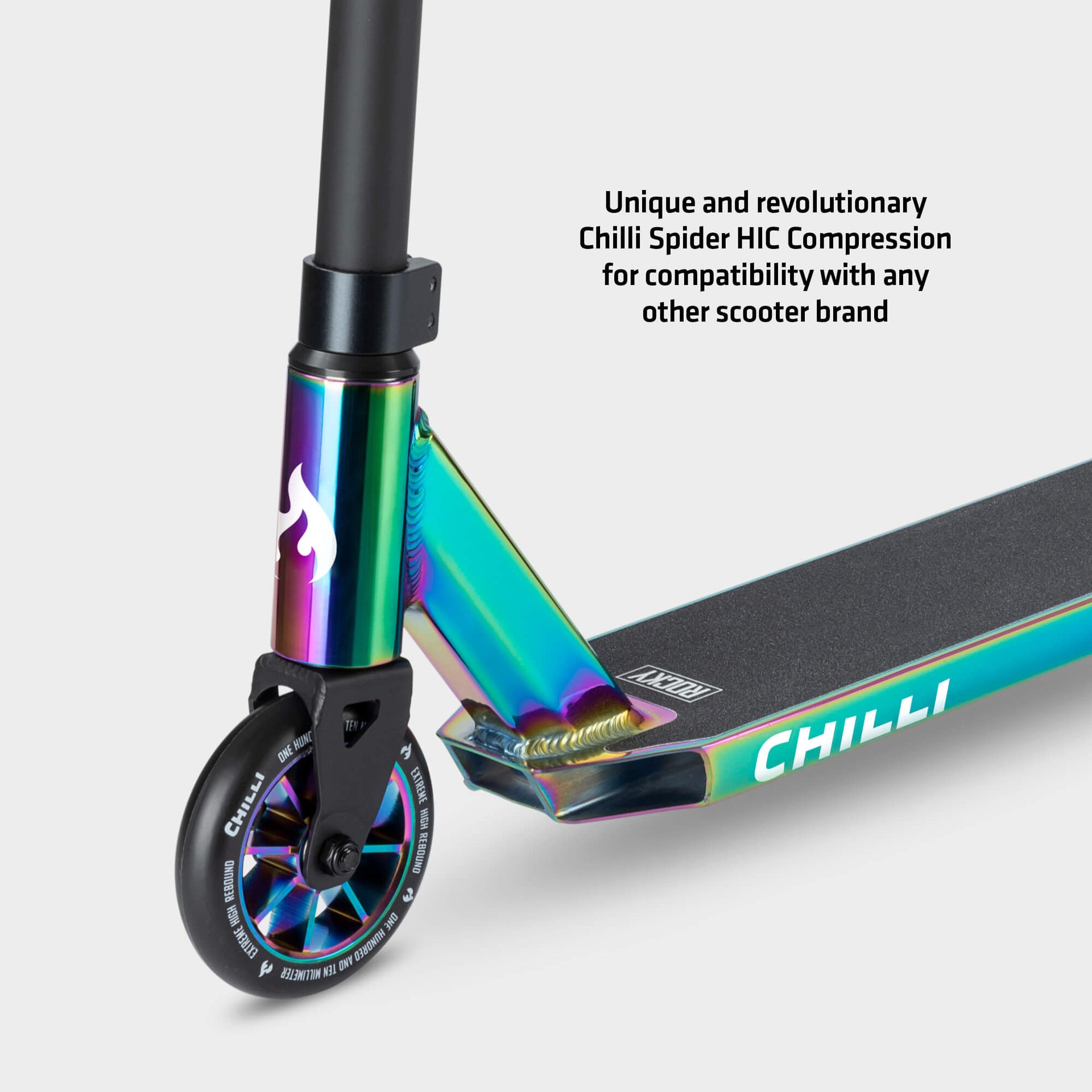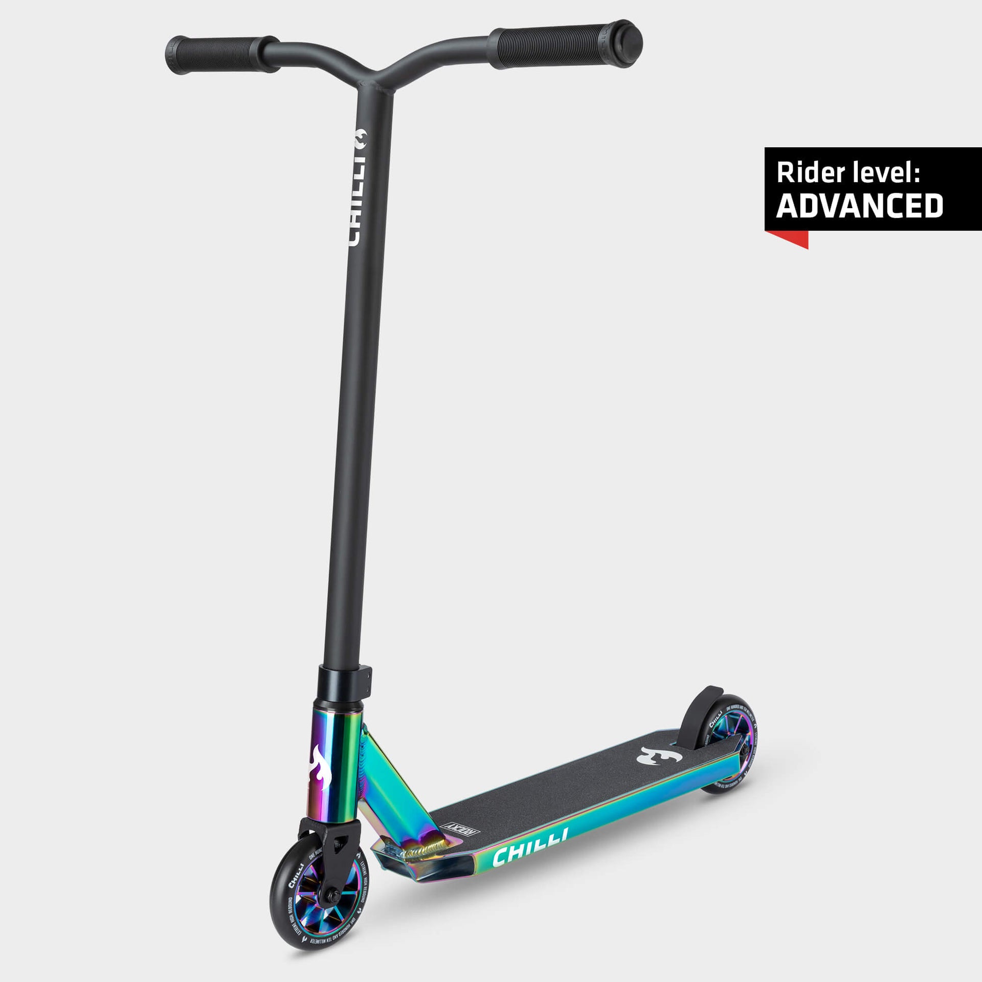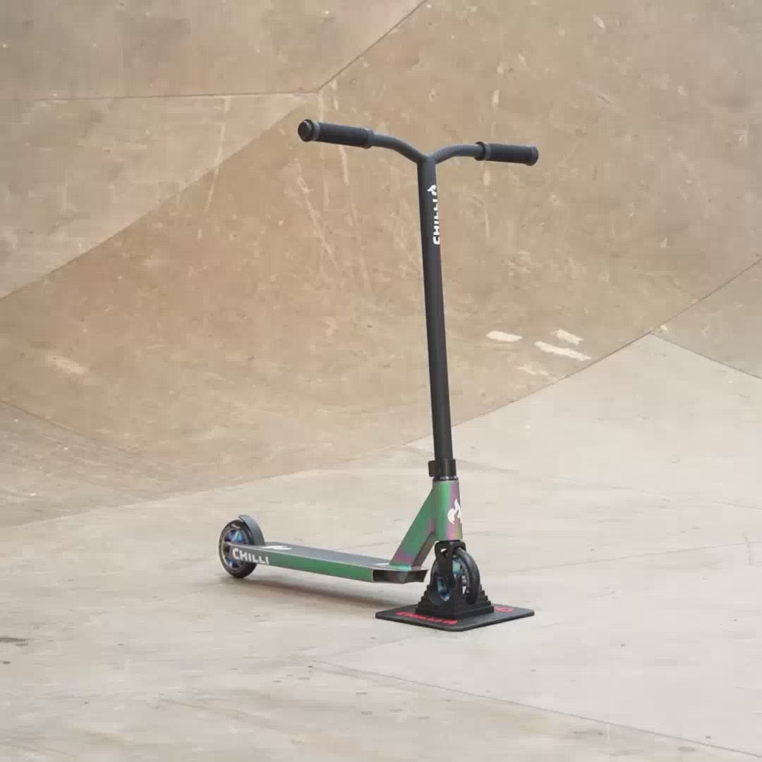 Introducing the Chilli ROCKY - the first stunt scooter coated with a stunning neochrome finish.
