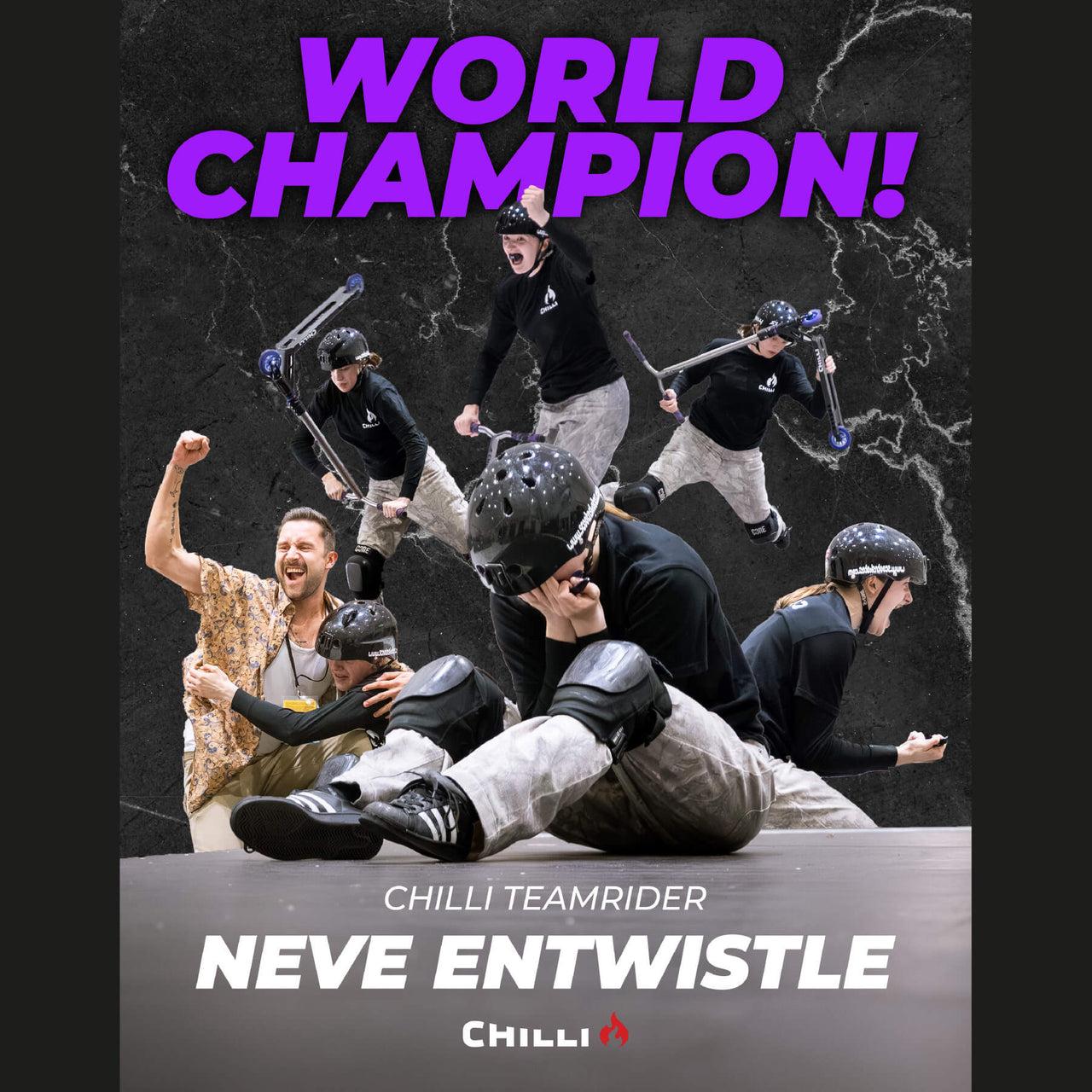 Pro rider Neve Entwistle made history by becoming the Female Freestyle Scooter World Champion 2025. Backed by Chilli stunt scooters, she took first place in her category.